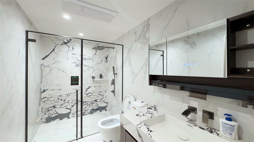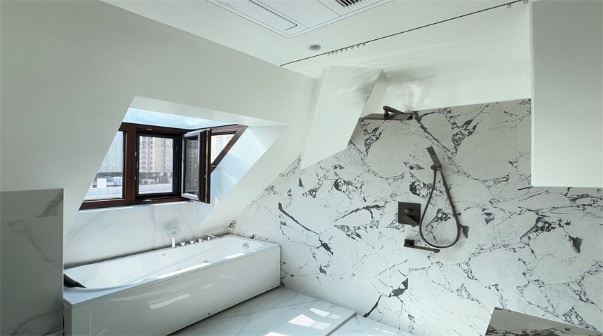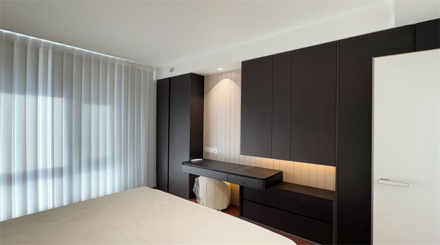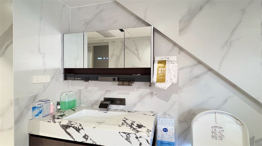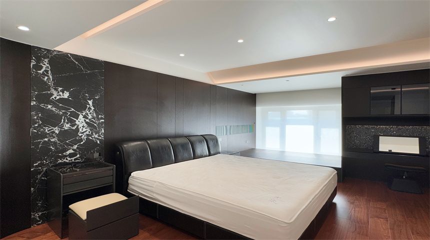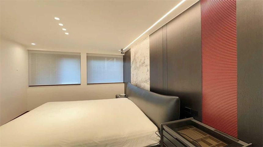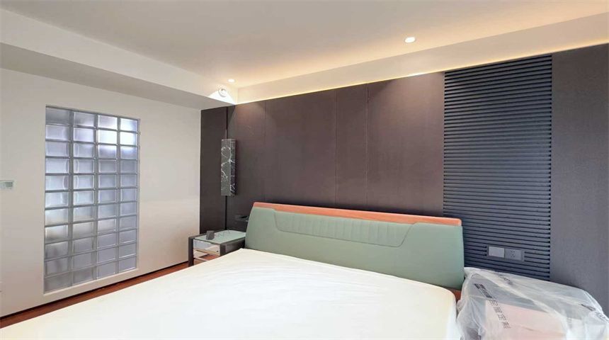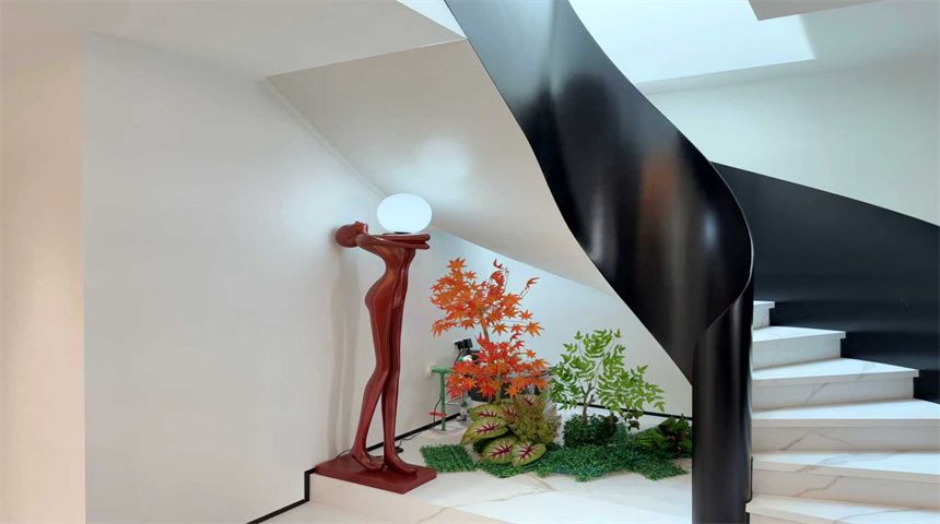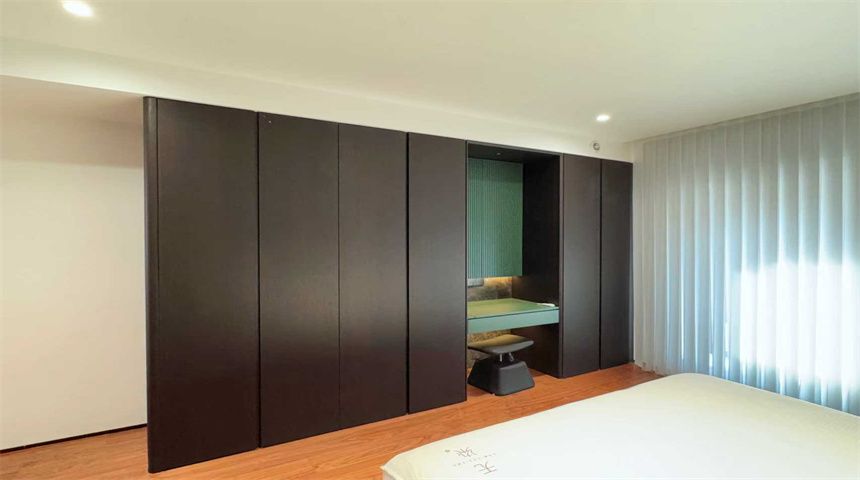 本案为意式风装修。400平米两层复式,地面大砖铺贴,无主灯吊顶,中央空调,楼梯扶手钢板氟碳喷漆,餐厅顶面GRG圆弧造型。推门入户,首先是一层空间,右侧是一组玄关柜,左边是客厅,地面1800*900的大砖通铺,顶面无主灯吊顶,选择筒灯+线形灯进行组合照明,全屋中央空调。电视背景上下做线形灯带,85英寸大电视,门边处墙体做圆弧处理,沙发背景墙采用实木护墙板。厨房西厨中间做大岛台,靠墙一侧做整体橱柜,里面做中厨,中间部分采用大花砖,电器做嵌入式。餐厅顶面做GRG圆弧造型,搭配线形灯美观大方。主卫做墙排洗手盆,壁挂马桶,极窄边框的玻璃淋浴房,墙面铺贴1200*600大花砖。主卧通顶大衣柜,做悬浮写字台,床头背景墙做跳色+格栅设计,床尾柜也是通顶大衣柜+梳妆台。通往次卫过道摆放绿植,顶面做晴空灯,次卫做墙排洗手盆,墙面1200*600的大砖铺贴,做壁龛置物。次卧铺木地板,靠次卫一侧墙面砌玻璃砖。楼梯扶手采用钢板氟碳喷漆,台阶做感应灯,二楼进门空间做成会客茶室空间,靠墙定制做的储物柜兼展示柜。主卧空间,沿过道做了两排嵌入式大衣柜,床头背景墙做了一个弧形设计,顶部做异形吊顶,主卫做独立淋浴房、洗手盆、马桶、大浴缸,汗蒸房。次卧、客卧也做了大衣柜,床头背景墙。