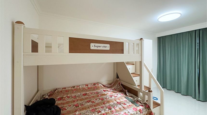 次卧做了榻榻米,儿童房摆放了一个上下床。