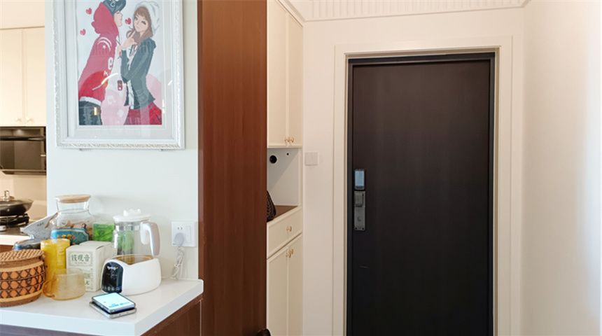 推门入户首先是鞋柜,顶面是小花灯