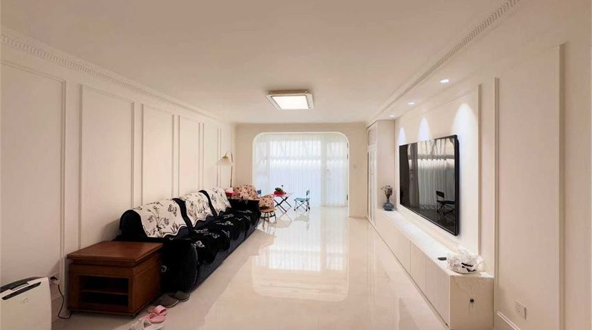 特点:轻法式装修,124㎡,三居室,大砖通铺