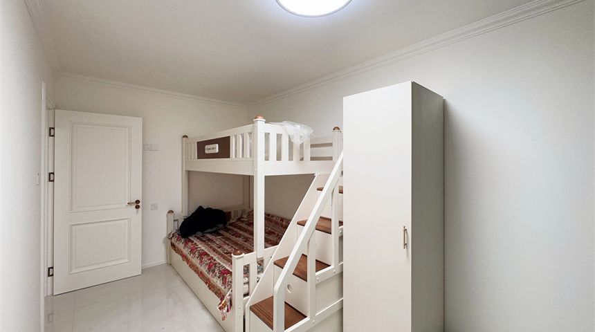 次卧做了榻榻米,儿童房摆放了一个上下床。
