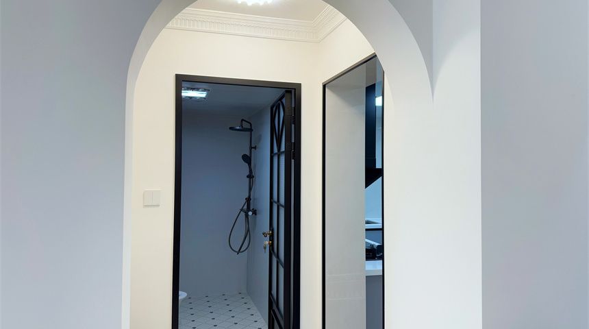 通向次卫、厨房的过道也做了拱形门洞,过道顶部安装小花灯。