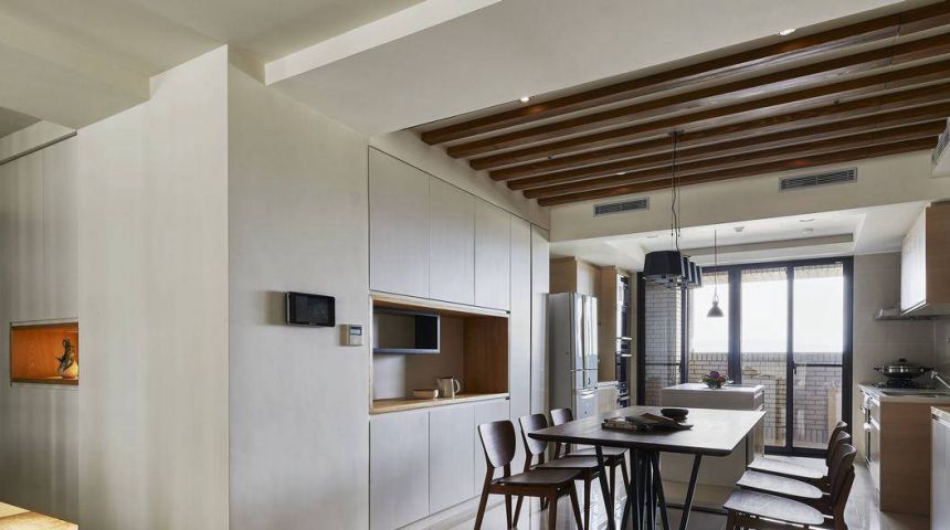 “叙写北欧生活的特调温馨。”化简繁复多余的媒材堆叠,巧以通澈光感为题,尝试在功能分配、开敞视野以及简约知性的风格态度,找寻着合乎使用逻辑的完美平衡。 在现代式的主题基底中,将女主人由衷向往的乡村情景,透过隔栅手法缀入餐区天花当中,适度表达闲散悠逸的空间氛围。
