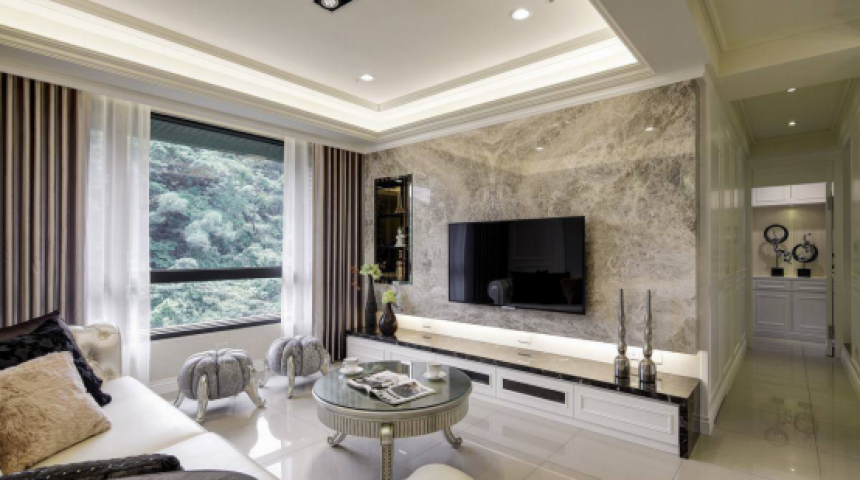 本个案中演绎极致品味,揉合优美新古典与现代时尚的语汇,为年轻夫妻构筑幸福的居家生活。纯净、素雅的客厅,运用线板作层次堆叠,配置低调奢华感的订制家具,刻划出美感交织的场域。明亮净透的主卧房,保留对称均衡及纯白的色调,床头背板使用贵气紫的绒布质材,墙面则用菱格纹的绷皮,让优质的卧眠氛围淬炼出来。