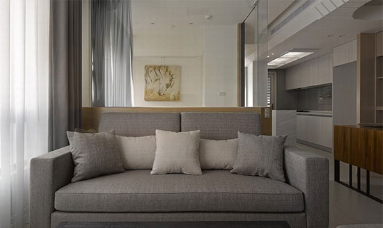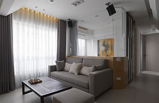 拆除沙发实墙,以清透介面取代的设计,正是光线得以流动穿透的关键所在。