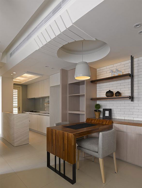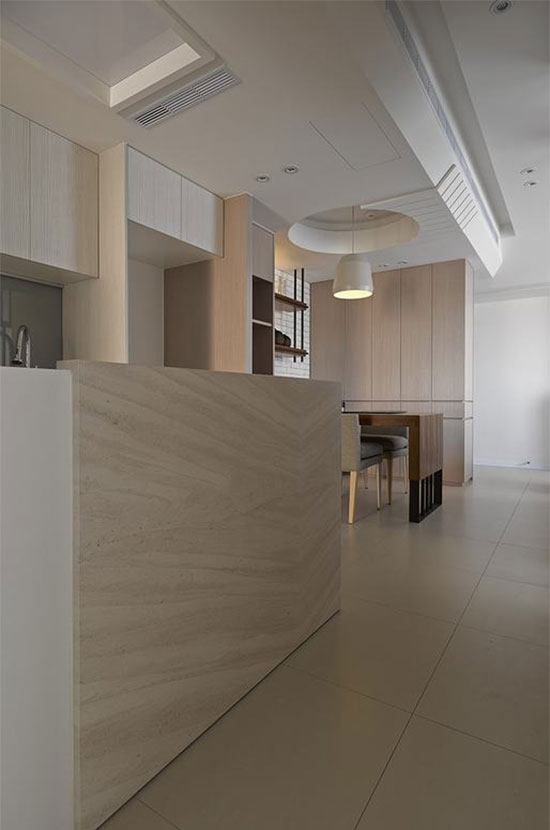 仅以吧台为界,除了使光线能分享到厨房内,也扩充实用功能及工作空间。