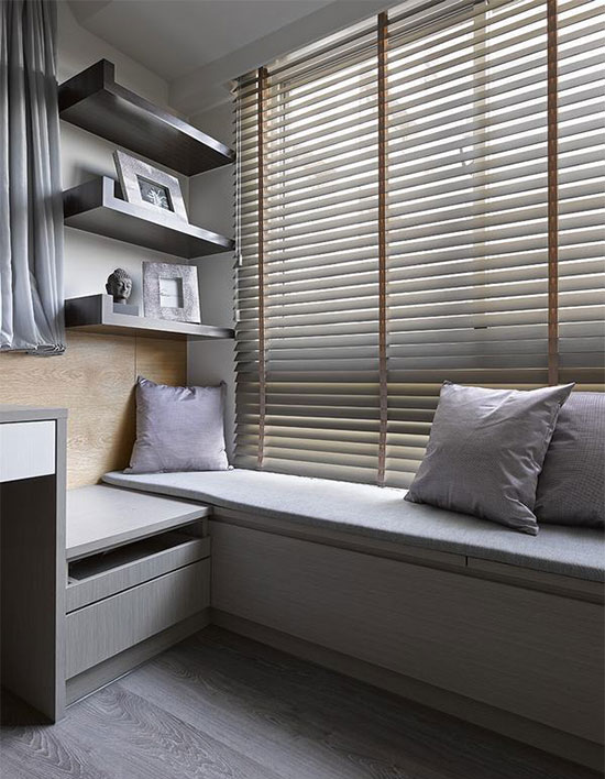 随时能透过百叶调整光影强弱,使卧榻区域多了一分慵懒味道。