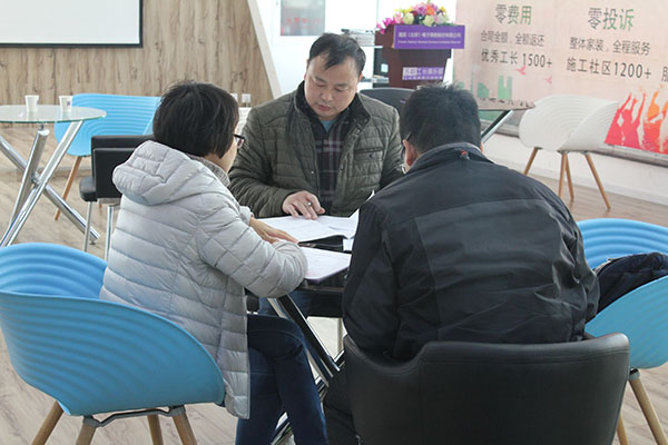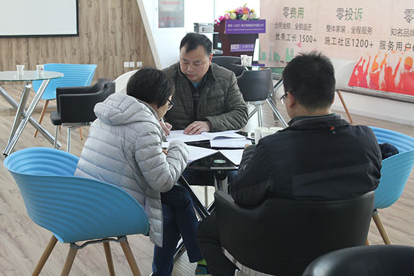 李克金工长之前为客户王女士的朋友装修过房子,王女士去朋友家参观了工地,装修效果漂亮实用,施工质量过硬,家人很满意李工长的服务,团队成员之间协同作业的能力让王女士很放心,王女士直接预约了李克金工长来测量报价,李工长真诚的为人以及丰富的施工经验、合理的装修报价,让王女士更加放心的把家交给他来装修,3月5日双方在苏皖总部玉泉营签订施工合同。