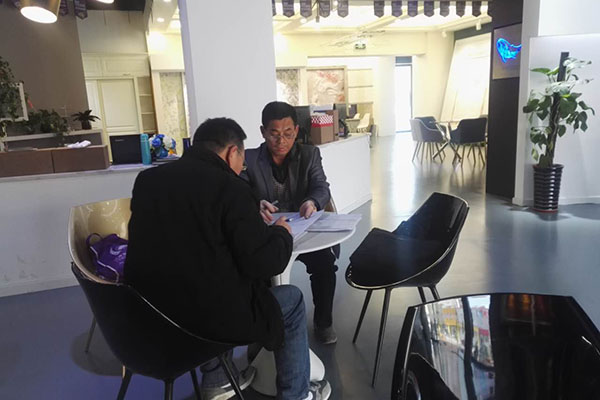 杨四清工长之前为刘先生的朋友装修过房子,刘先生去朋友家参观了工地,装修效果很棒,施工质量过硬,刘先生直接上苏皖的官网预看了看杨工长的案例和简介,通过客服预约了杨四清工长来测量报价,杨工长与业主沟通的很好,合理的装修报价让刘先生更加放心的把家交给他来装修,3月8日双方在苏皖总部玉泉营签订施工合同。