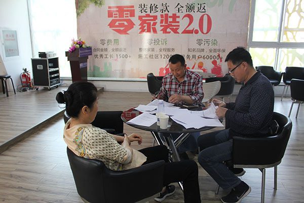 通过上网搜索,得知了苏皖工长俱乐部这家品牌公司,工长多,选择性大,查询中得知苏皖是半包的装修方式,签订三方合同由俱乐部承担后期保修,在客服人员的帮助下顺利预约到三位工长做比较,反复比对,选定了苏皖的丁士兵工长。丁工长为人实在,报价细致,思路清晰,把房子交给他装修还是很放心的。5月1日,张先生与爱人一起来到苏皖工长俱乐部,同丁士兵工长签订了施工合同。