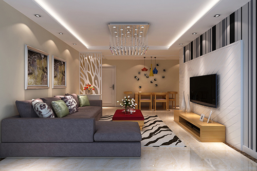 客厅是传统与现代居室风格的碰撞,设计师以现代的装饰手法和家具,结合古典中式的装饰元素,来呈现亦古亦今的空间氛围。中式风格的古色古香与现代风格的简单素雅自然衔接,使生活的实用性和对传统文化的追求同时得到了满足。影视墙的造型简洁现代,却在醒目位置饰以中式古风画饰,这种绝妙的组合给人以强烈的视觉意志力,成为时尚与古典的柔媚结合。