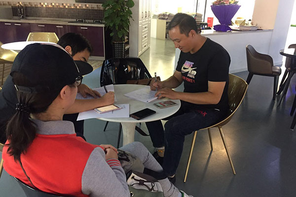 最早在电视上看到过苏皖的节目,很喜欢里面装修的精彩案例,半包的装修方式深深吸引着沈先生,官方网站咨询中热情的客服推荐了三位工长量房,第一次电话沟通中秦工长就给沈先生留了很好的印象,量房时只有秦工长最专业,最实在,最有耐心,能从客户的角度考虑问题,报价项目全,马上就要到装修的旺季,沈先生看准时机先与秦工长签订了合同,10月1日双方在苏皖总部玉泉营签订施工合同。在此预祝宋先生开工大吉,阖家幸福!