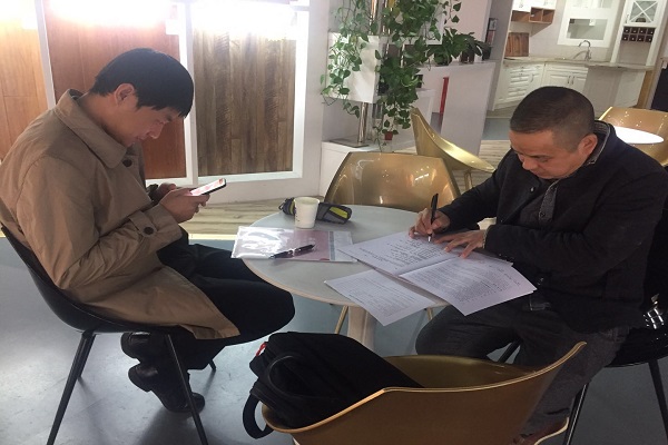 从电视得知苏皖工长俱乐部是老牌的装修公司,业主评价高,半包的装修方式可以更好的控制预算,查看资料时感觉江燕工长面相好,业主对工长评价真实,杨先生便通过客服指定预约了江燕工长,量房中江燕工长对新房装修的丰富经验,让杨先生非常满意,细致报价,更加坚定了杨先生对苏皖工长俱乐部选择的信心,确定开工时间后双方于11月8日在苏皖总部玉泉营签订施工合同。