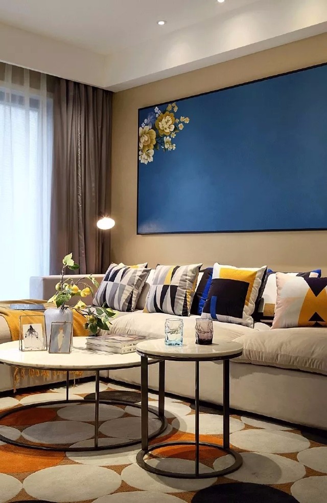 以多种色彩的搭档碰撞,形成了这种偏年轻活力的现代简约风格案例(下图),整体氛围简约为主,没有过多的装饰,只在色彩上有所突破。