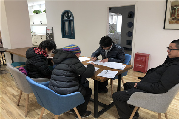 从网上了解到苏皖工长俱乐部是个老品牌,约了几个工长对比,最终选定曹先义工长,因为半包的装修方式能控制好预算,量房过程中曹工长对提的建议合理,经验丰富,报价也挺详细,觉得选择曹工长更放心,确定开工时间后与曹先义工长相约苏皖玉泉营总部签订装修合同。