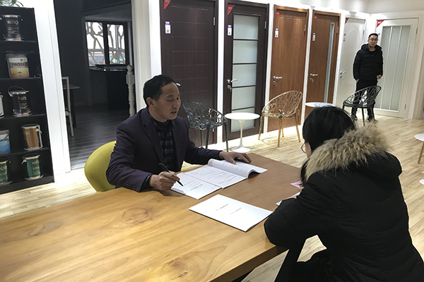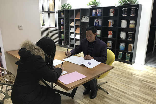 通过上网搜索,得知了苏皖工长俱乐部这家品牌公司,半包的装修方式更省心省时省力,签订三方合同由俱乐部承担后期保修,在客服人员的帮助下顺利预约到徐礼占工长量房做报价,徐工长报价实实在在,沟通方面也非常顺畅,将房子交给经验丰富的徐师傅很放心。3月17日,双方在苏皖总部玉泉营签订施工合同。