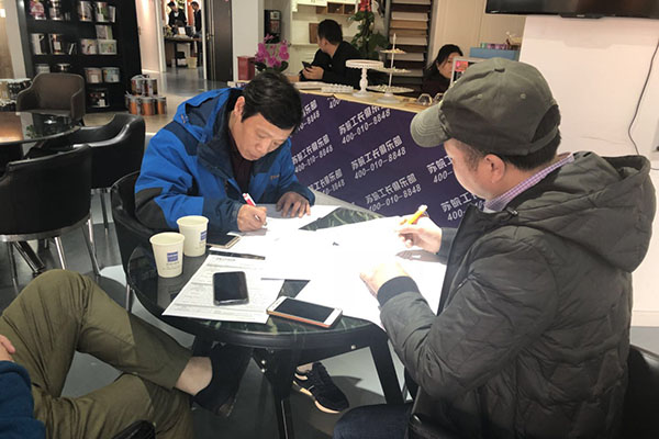 刘先生是通过朋友的鼎力推荐了解了郑彬工长,经过沟通觉的郑彬工长为人实在,报价清晰明了,公司不收费任何费用,材料公司统一配送,施工主材一站式服务充分体现便民的服务,3月23日双方在苏皖总部玉泉营签订施工合同。