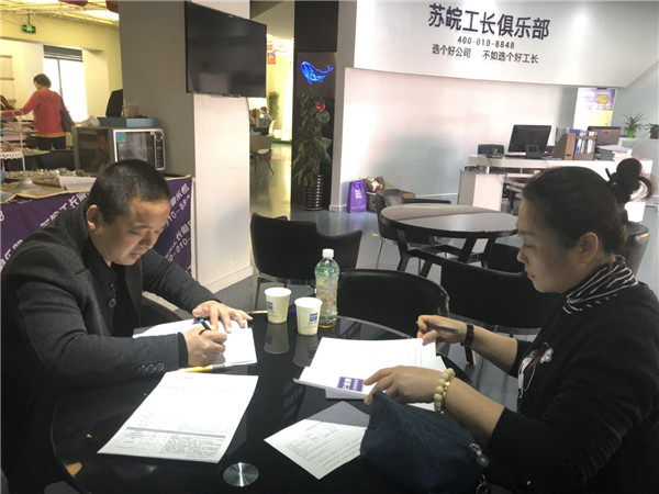 上次装修找的苏皖工长俱乐部,就是用的江工长,直接与工长谈单,价格可以与工长协商,苏皖工长俱乐部承担后期保修让杨女士非常的放心,第一次装修过程中江燕工长实实在在的为人,给杨女士留下了很好的印象,沟通方面非常顺畅,真诚的服务让杨女士感觉很踏实,报价非常合理,活做的很细致,将装修的事交给实在的江工长,信誉好的公司就是放心,4月15日双方在公司总部玉泉营签订施工合同。