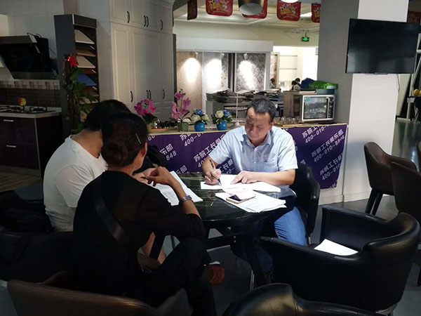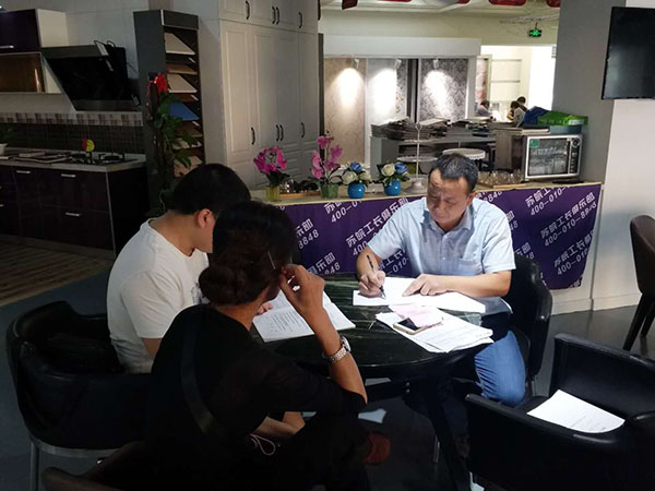 通过电视了解,觉得工长俱乐部这个模式性价比高,很省钱,所以通过网络预约了两家工长俱乐部,经过接触,觉得苏皖的工长报价比较全面实在, 最终选了丁士兵工长,丁工长比较直率,坦诚。我们相约8月18日在苏皖总部玉泉营签订施工合同。