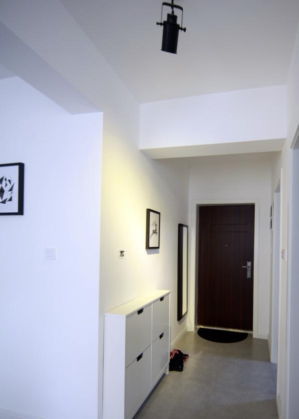 入户的位置也非常简单,鞋柜和穿衣镜加一副挂画就是全部了,不过入户位置是做了吊顶的,大家看装修前的照片墙顶面有水管,不能拆,在入户的位置又很难看,就做了石膏板平掉给遮起来了。