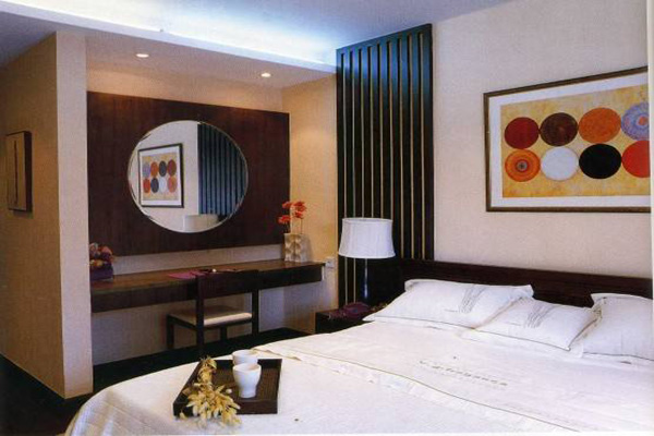 要想在有限的空间内安置各种卧室物件,那么,储物柜就最好不要用传统的方法,这样会占用太多的空间,可以利用墙壁的内置空间,这样从外部看起来没有太多的痕迹,但内部却大有文章,是一个有效的方法。如床底下也能储物,能够很好地节省外部空间。