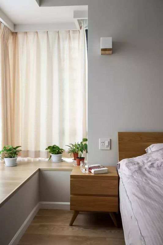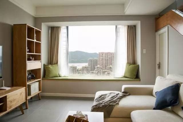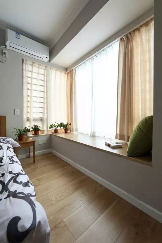 ▲L字形大飘窗,窗台台面铺贴的是木地板,这样就不会感到冰冷。