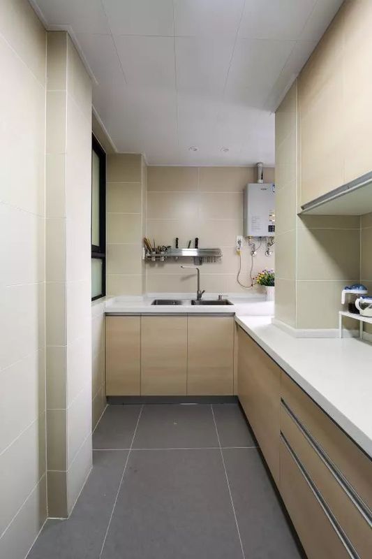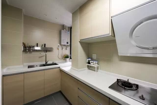 ▲厨房空间还算大,就采用了L字型灶台,可以同时容纳几人在厨房操作。