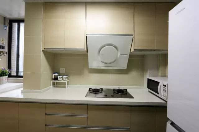 ▲墙砖特地选了和橱柜差不多的颜色,这样不会显得突兀,更像一个整体。