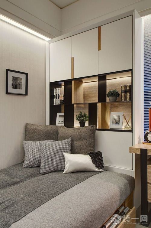储物空间小:选择储物功能齐全的家具,并充分利用家具的变身功能,如选择床可以嵌在其中的衣柜或书柜。也可根据个人需求做个地台,其下可以搁置被褥等物品,不睡觉时还可将其变为一个休闲空间。还可在卧室处做一个吊柜,将平常搁置不用的物品放置其中,不过卧室会相对比较压抑,而且物品的拿取也不大方便。