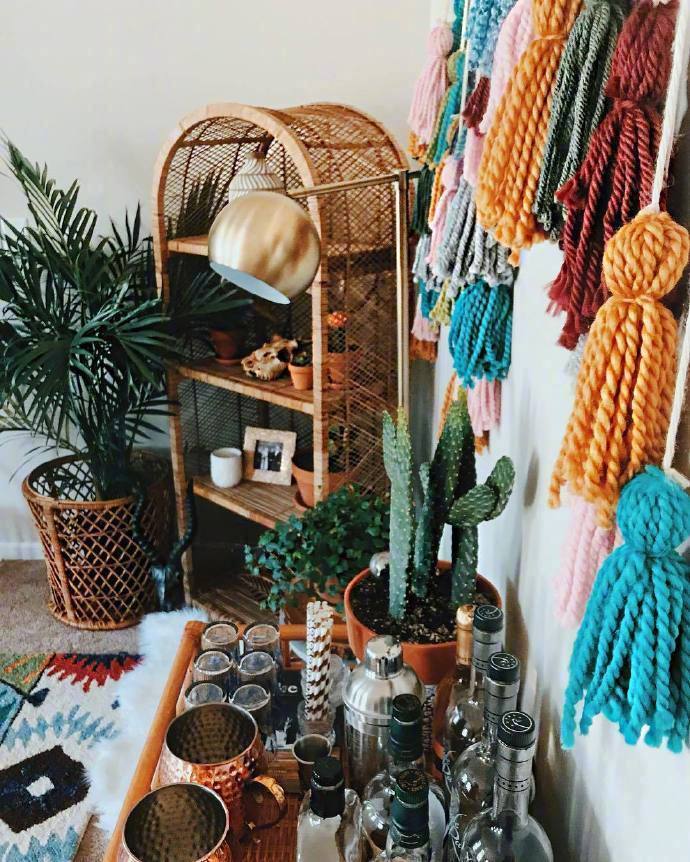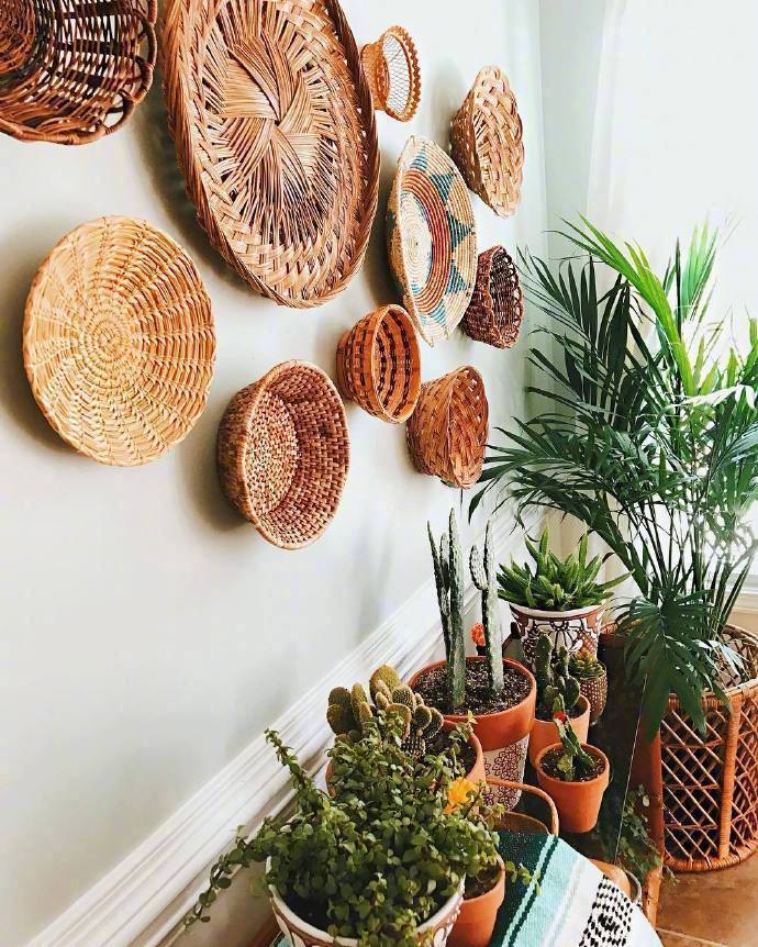 壁纸和木制品有一种天然的和谐感,我们可以采用绿植和木制品相搭配的方式进行校园装点,这个室内装饰在墙面采用了独特的木质编织的装饰,在下方又放置了很多的绿植,真是一个让人感到惊艳的角落。