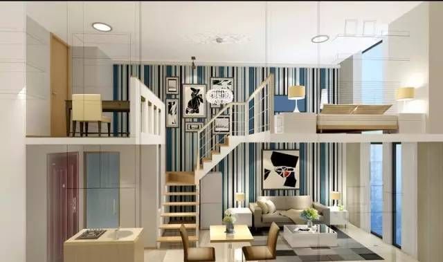 Loft房型的格局规划很重要,装修时应该确保一楼的空间,尽量保证层高在2.5米左右,不然加上灯具,就会显得低,给人带来压迫感。
