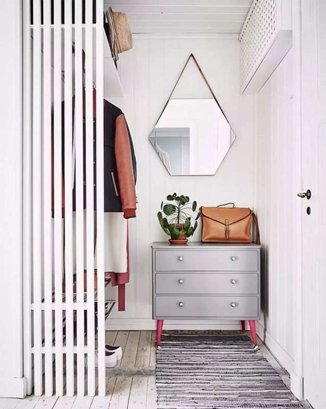 有条件的还可以在衣帽架旁边放一个落地全身镜,空间不足就贴墙上。