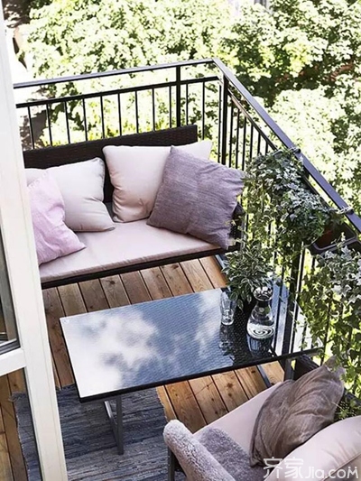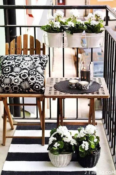 节省空间的桌子。买一张不太大的桌子,别让你的阳台显得格外拥挤,最好是可以固定在栏杆上的折叠桌。不用的时候收起来也能节约出不少空间。