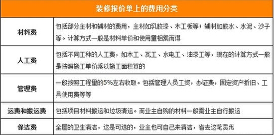 二、装修报价单上的费用分类